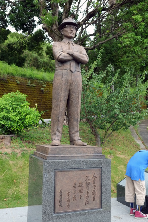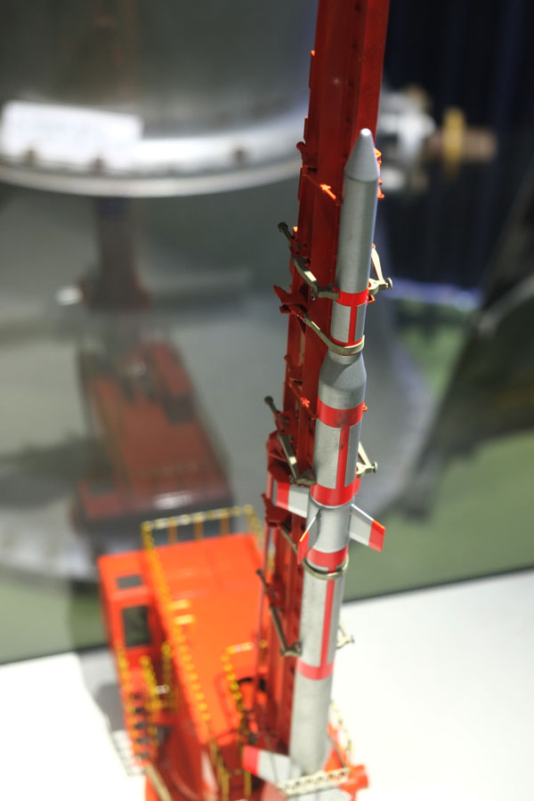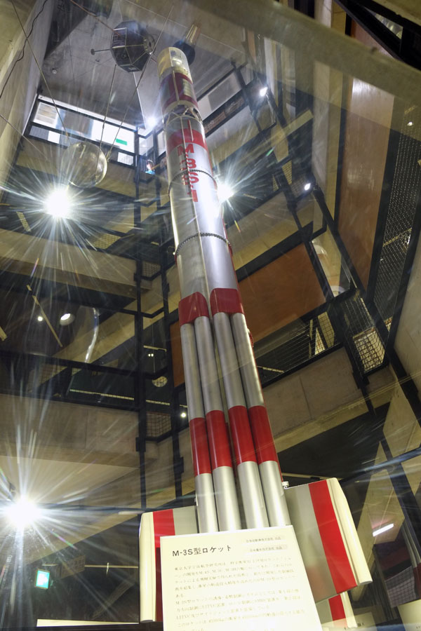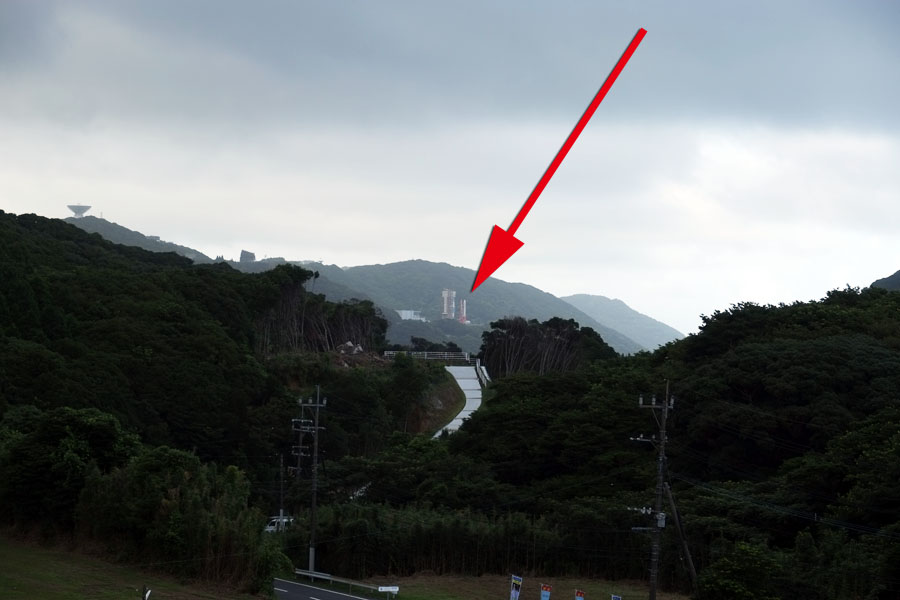 ところで今回鹿児島に向かった理由はと言いますと、なんとなく去年と同じようなパターンではあります。去年は夏休みに入ってすぐに種子島でロケットの打ち上げが予定されていましたが、交通手段はすべてソールドアウト。それでも種子島宇宙センターに行きたい気持ちが冷めなかったので、打ち上げとは関係ない日に種子島に行ったのでした。そして今回は種子島でなく、内之浦での打ち上げが行われるという話。しかも8月22日。これなら沖縄に帰省した帰りに行くのにちょうどいい日程です。交通手段もいくらでも有る。そういうことで今回鹿児島に行くことにしたのでした。ところが、ところがですよ、8月に入ってから打ち上げが27日に延期になってしまったんです。今さらそう言われてもという感じです。既に飛行機は予約済み。今から変更するとなると一旦全部キャンセルしてから取りなおさないといけない。しかし既に新たな予約は難しい状態。ですので当初の予定のまま飛行機を使うしか無いわけです。ということでの鹿児島入り。でもせっかく鹿児島に来ましたので、JAXAの内之浦宇宙観測所に行ってみたいですよね。鹿児島市内に移動して、大学のツレと会うことも出来ましたが、今回はそれは我慢して大隅半島に向かいましょう。幸いロケットの発射準備中でも施設の見学はできるそうですので。鹿児島空港からレンタカーを借りて2時間ほどで到着です。ではまずは、入口ゲート横にある宇宙科学資料センターに行きましょう。 ここには、これまで内之浦で研究されたり、打ち上げられたりしたロケットの資料がたくさんあります。本当にたくさんあります。 これは初期のロケット開発に使われたペンシルロケット。 発射台の模型とか、 エンジンもあります。 これは、M-3Sロケット。 しかしなんと言いましょうか、展示物が時代を感じさせる。種子島で見たものとは明らかに時代が違います。しかし面白い資料館ですね。ひと通り見たら、いよいよ施設内に入っていきます。 施設内には受付をして車でそのまま入れるんですね。車にはこんなバッジを貼るように指示があります。で、中に入ったのはいいのですが、実は施設の建物内部というのは見ることができません。もしロケットの発射準備がされてない時期であれば、発射場にも行けるようなのですが、今はイプシロンロケットの打ち上げ直前状態。本来なら22日に打ち上がるはずのものですので、当然今は発射場に行くことはできません。では何が楽しめるかといいますと、施設内の一番奥の、20mパラボラアンテナが有るところ。 ここに行けば、少し遠くではあるものの、発射台が見れるわけなんですね。 こんな感じで。(35mm換算で28mm)ではせっかくですのでズームアップして、更に拡大してみましょうか。 おお、発射直前のイプシロンロケットを見ることができましたよ。考えてみれば、打ち上げ当日では、もうこんな近くでイプシロンロケットを見ることはできませんので、ある意味お得かも。うん、今回ここに来てよかった。あとは何か見学できるのもがないかとキョロキョロしていますと、こんなものもありました。 「イトカワ」そうです。ハヤブサで有名になった小惑星イトカワの名前の由来になった、いやいや、日本のロケット開発の父、糸川英夫さんの銅像です。なんだか嬉しい。そしてその糸川さんの横には、 「おおすみ」ここ、内之浦から打ち上げられた日本初の人工衛星。これが有ったから今の日本の宇宙開発が有るんですね。記念碑ではあるものの、見れてよかった。ではでは、イプシロンロケットも最短距離で見ることが出来ましたので、今度は打ち上げの見学場にも行ってみましょうか。見学場は発射台から3kmほど離れたところ。 打ち上げ当日は抽選で当たった人だけが入れるこの場所ですが、今ならだれでも入れます。階段を登っていった先に、 ちょっとしたベンチが据え付けられていて、何人かは座って見れるような感じです。しかし注目すべきは奥の矢印の位置。この辺りから正面を見てみますと、 おお、さっき見た、イプシロンロケットが設置された発射台がしっかり見えますね。矢印の場所が特等席です。この画角で35mm換算約83mm。幸運にも打ち上げ当日ここから撮影できる方は画角の参考にして下さい。ではここでもせっかくですのでピクセル等倍まで拡大してみましょう。 さて、27日はどんな打ち上げの様子が見れるのか。当日現地に行けない私は、PCでライブ中継を見るとしましょうか。