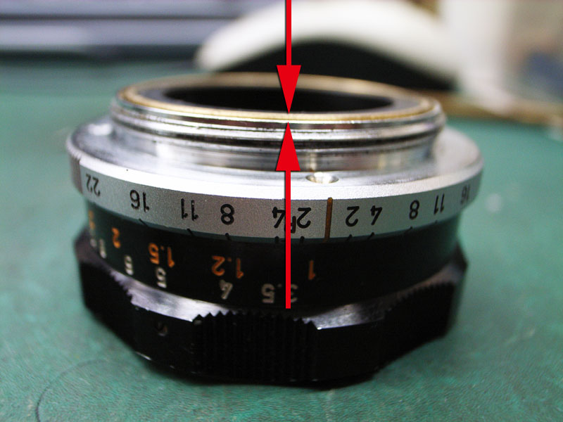絞りの連動ピンの破損についてはなんとか形になったキヤノン35mm,F2ですが、ヘリコイドも硬くなってるんですよね。せっかくバラしてますし、やっぱ気持ちよく使えた方がいいですから、ヘリコイドもオーバーホールしときましょう。 そのためにはまず位置確認から。