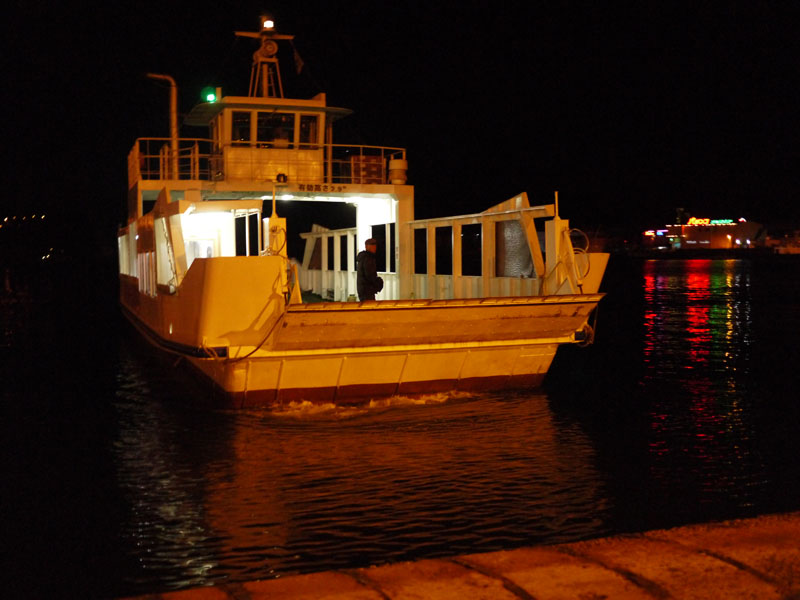 白クマも食べ忘れてましたので、どっちがいいかなと思ったんですが、本格的な白クマはやっぱり無いみたいですし、現地で食べるさつま揚げはやっぱ美味しいんですよね。と言うことで、さつま揚げひと皿250円。うちの子と分けて食べましょう。醤油もかけて。もちろん醤油は鹿児島の醤油。甘いです。でも生姜と一緒に食べるとこれがウマい。ビールも欲しくなるけどチョットここは我慢して。ではそろそろ時間です。16時ちょうど発の新幹線に乗りますよ。本当は800系に乗りたかったんですけど、広島まで直中はN700系だけですね。 駅に入っている車両を見ても、N700系ばっかり。ではでは出発。鹿児島中央を出ますと、熊本に停車するだけで、一気に博多まで行きます。博多に着くと、 おお、隣のホームに停まっている800系がチョットだけ見えました。やっぱ800系カッコいい。何とか見ることだけはできましたので、結構満足。しかし新幹線は速いです。出発から2時間20分余、18:21には広島に着いてしまいます。が、ここからが問題。広島からこだまへの乗り換えが長い。次のこだまは、18:51ですか。30分待ち。 仕方がないので、ホームの待合室にでも行っときますか。そしてやっと来たこだまに乗りますが、三原でまた乗換えです。新尾道まで行けばいいと思うかもしれませんが、うちに帰る場合は新尾道駅では不便です。在来線の尾道駅まで行きます。しかも、今回は三原駅のコインロッカーに不要なものを預けて行きましたので、それも取り出さないといけません。19:19三原到着。本来なら19:25発の在来線に乗ればいいのですが、一旦改札を出て、コインロッカーから荷物をとって、またホームに上がらないといけません。果たして6分以内にそれが可能か。新幹線が着いたら、急いでコインロッカーへ。追加料金600円。だがしかし、すべて100円玉で払わいといけません。財布には100円玉が有りません。仕方がないので近くにある自動販売機で飲み物を買って、お釣りで…が、それでも100円玉4枚ですか。自動販売機のいじわる。必要ないときは全部100円玉でお釣りを出すくせに、こういう時は500円玉を出すんですね。仕方がない。もう一本飲み物を。これでやっとロッカーから荷物を取り出せました。はい、もちろん、25分の電車は出た後です。では次の電車はと。31分糸崎行きが有りますね。糸崎止ですが、そこから乗り換えがあるでしょう。と思ってその電車に乗りますと、車内アナウンスが有りました。糸崎からの乗り換えはなく、尾道から先に行きたい場合は次の電車に乗れとのこと。そうですか、仕方がないですね。じゃあ次のにしましょうか。で、次の電車は何分ですか?……19:59。マジですか。また30分以上待ちですか。 やっぱ車で三原まで来ればよかったか。しかたがないので待合室で待ちます。そしてそして、やっと尾道駅に着いたのは、20:12。 渡船を渡って、ふう、やっと帰りつきそうです。しかし、鹿児島から広島までより広島から向島までの方が時間が取られるとは…