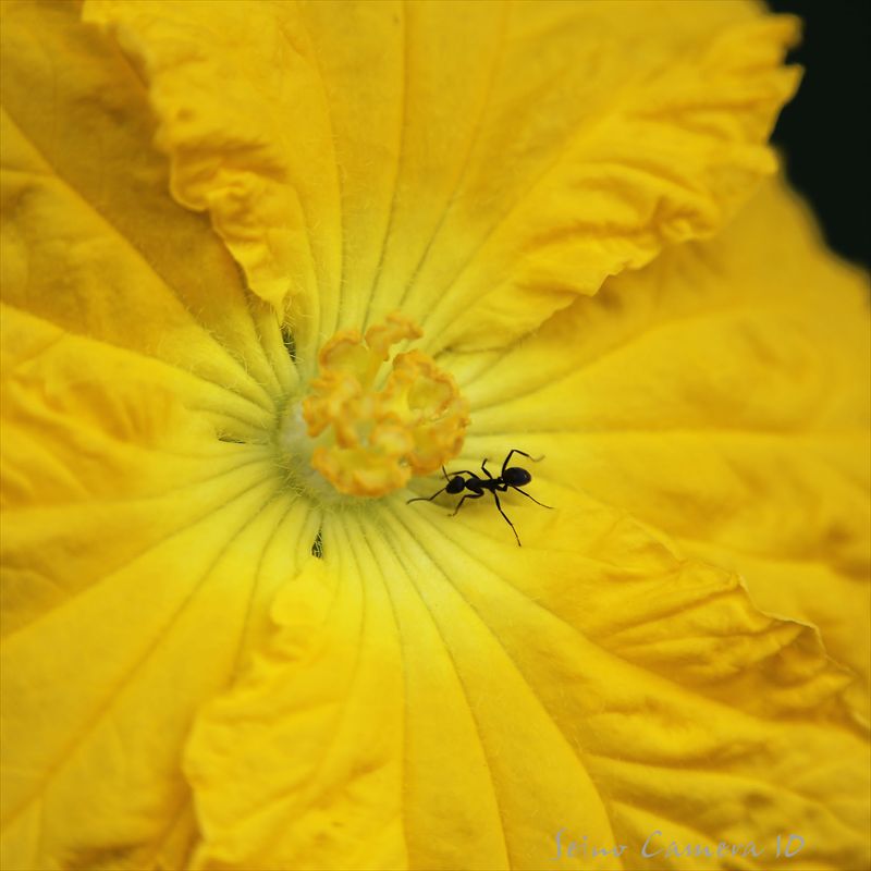 朝は咲いてたのに、もうしおれてしまったのかとちょと残念に思ったアサガオでしたが、 8月18日、晴れ、27℃。また咲いてる。 次の日も。次々新しいのが咲くのかな?と思ったりしてみたけど、よく考えたら、これはアサガオ。花が咲くのは朝ですね。当たり前か… 8月13日、曇り、24℃。シロテンハナムグリ?この白い点て、ランダムについてると思ってたんですが、どうやらどの個体でもほぼ同じ位置についているようなんです。他の写真と見比べて初めてわかりました。 最近は、緑のカーテンという名のもとに、ゴーヤーを植えていることもよくありますが、これはなんでしょうね。ゴーヤーではなさそうです。 8月28日、曇り、25℃。アリも蜜が好きなのかな?て言うか、蜜あるのか?と言った感じの8月の朝撮りでした。植物に勢いがあって楽しい月ですね。