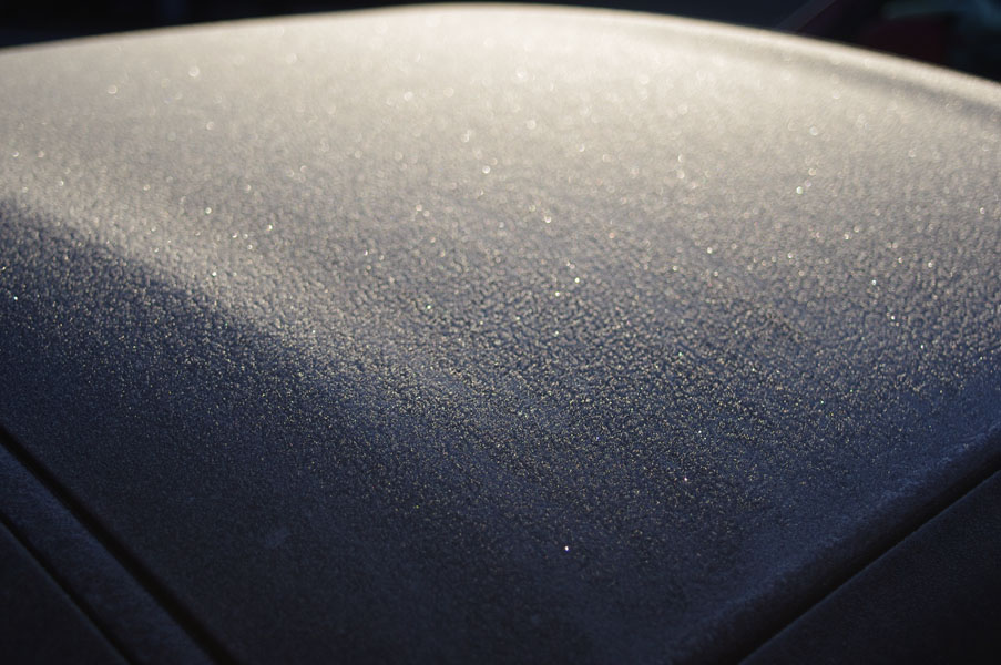 うちの子を早朝に送って行かなくなったこともあって、朝の早い時刻に車の様子を見ることがなくなったこともあるのでしょうが、今季はなかなか車の霜が見れなかったんです。