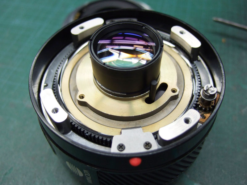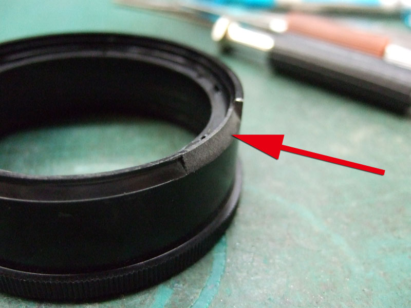 構造は50mmとほぼ同じなので、詳細はそちらを参考に。 マウントを外してみるとそれがよく分かります。で、今回も同じ手法で切り詰めるんですが、 どうやら50mmよりも多く削れそうです。ではまずは大雑把にノコで切って、 こんな感じで。角の出っ張りをヤスリで落としていきます。 こんな感じでいいでしょう。ではでは組み直して、最短撮影距離がどのくらいになったのか調べてみましょう。元々の最短撮影距離は30cm。 この切り詰めで、23cmまで寄れるようにってますね。これは以前改造した、ペンタックス-A 28mmと同じレベルです。これならまぁまぁ面白そう。では実際に撮影してみます。まずはこちら、最短撮影距離を切り詰めた、50mm改での最短撮影距離。 それに対して、今回の28mm改での最短撮影距離撮影。 焦点距離が短いとはいえ、50mmの39cmに比べてこちらは23cmですので、今回の28mmの方がほんの少し撮影比率は大きくなるようですね。うん、個人的には満足です。でですね、この28mmは、A900のようなフルサイズで使うのも楽しいのですが、多くのデジタル一眼レフで使われているAPS-Cサイズセンサーで使うと、なお楽しいと思うんですよね。その場合、焦点距離が約1.5倍になりますので、35mm換算で42mmほどの画角になるはずです。そんな感じにトリミングしてみますと、 こんな感じになるでしょうか。うん、こりゃ楽しそう。うちにはAマウントのAPS-Cサイズデジイチはないので、遊び用に中古ボディーでも探してみようかな?ん?PENTAX K-rとかぶりますか?