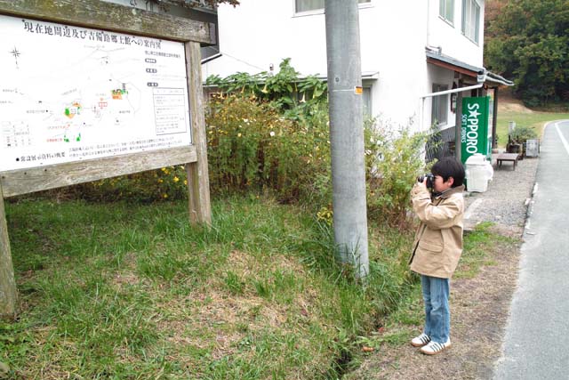 持って行ったデジカメは、SIGMA DP1です。 フィルムカメラの方が50mmなんで、広角が使えるカメラも用意しとこうと思ってのことです。 一応紅葉も撮りました。 広角ならではの広がり感です。 国分寺からこうもり塚古墳に行く途中に道案内があります。 こども店長はこういうのが好きです。 こうもり塚古墳まで行くと、周りには菜の花畑があります。 近所の幼稚園生が植えたらしいです。 時期になるときれいに咲きそうですね。また来たくなります。 それと、松ぼっくりやドングリもいっぱい落ちています。 いっぱい集めて、母さんとクリスマスリースを作るんだって。 吉備津神社では、おみくじを引きました。 出てきた数字と同じ番号の引き出しに入っているおみくじを一枚取ります。 「やったー!大吉!」と、こども店長は喜んでいました。が、後で他の引き出しも開けてみて、「全部大吉じゃんか」と言っていました。 まぁそれもいんじゃないの。みんなラッキーになれるんだから。 吉備津彦神社の入り口にこんな看板がありました。 なんで「わんちゃん」なんでしょうか。 後から他の人が書き加えたのでしょうか。 いやぁ、この看板の前に来たタイミングでおあつらえ向きのペンを持ってるという状況は、ちょっと考えにくいです。 ではなぜ「わんちゃん」と、書いてしまったのでしょうか。 「いぬ」と読んではいけない何かがあるんでしょうか。 神社の人に聞いてみればよかった。 てな感じで、楽しい吉備路でした。 それからそれから、帰り道なんですが、 たまたま目に入って、ちょっとクスみました。 「グラヒックス」って。 まぁ、「イングリッシュ」を「イギリス」と言ってしまうようなもんではありますが。 いや待てよ。スペイン語だったら「エングレス」だから結構近いね。ポルトガル語だったらどう言うんでしょう。 あぁ、話がずれてきた。