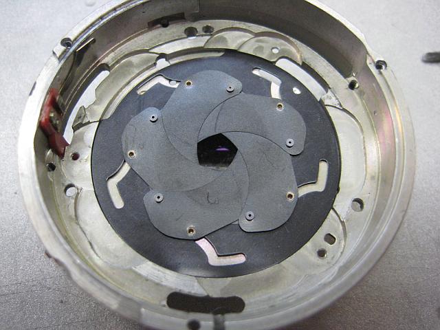 前のレストアでは、シャッター羽根と絞り羽根までは分解しなかったのですが、どうも少し油で粘っているみたいです。