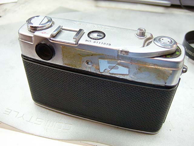 セレンの露出計が内蔵されていて、シャッターと絞りに連動し、それが適正かどうかファインダー内で確認できる。