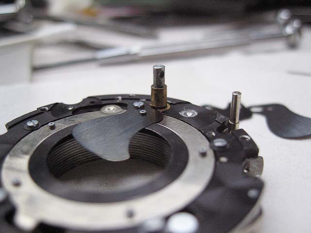しかし、リング群を付けようとした先に見えるシャッターは、羽根が一枚ずれているじゃ有りませんか。