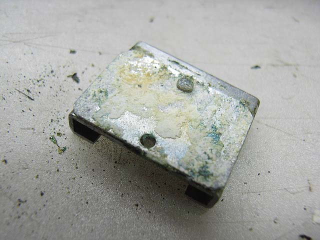 アクセサリーシューの緑青についてはそのままブラシをかけてもいいのですが、せっかくなので外して磨きましょう。