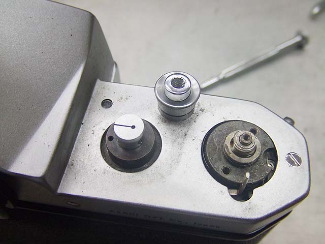 まずは巻き戻しノブを外します。