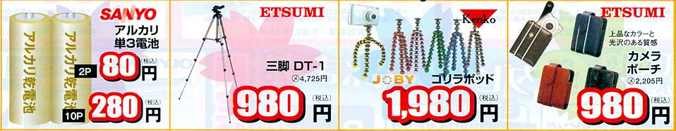 デジカメ特価販売や、各種用品もお買い得価格でご案内しております。