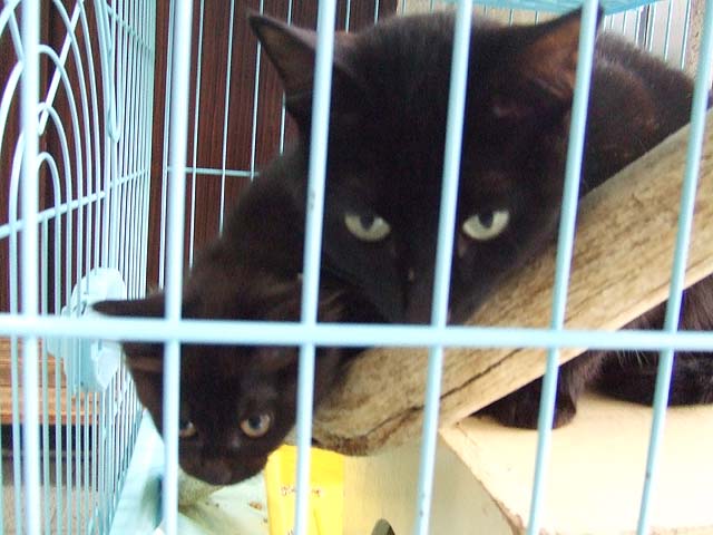 センターで手続きをしていると、玄関に黒猫が二匹いました。