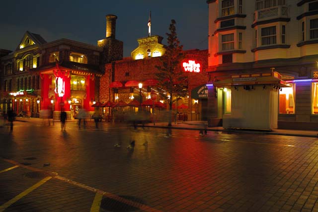 このパレードは、簡単な山車が何台か来て数分で終わるんだろうと思っていたんですが、そうではなく、 でっかい山車が何台でしょう、30台ぐらいかな?次々と出てきます。 でっかいのだけじゃなく、人間サイズのも沢山踊りながら一緒に行進して。 いやー、見ごたえありました。 今度は望遠持って行って、ダンスしている人たちを写してみたいですね。 しかし、USJの夜はMSPだけじゃありません。 街並みも非常にきれいになります。 昼間とはまた違った雰囲気で楽しいです。 三脚が無いのがとても残念。 子供向けアトラクションも、 なんだかラスベガスみたいな感じになってしまいます。 R指定のレイトタイムパスとかあるといいかもしれません。既にあるのかな? よく知りません。 ここのレストランは「フィネガンズバー&グリル」 家族でボックス席に座って楽しむもよしですが、 カウンター席で酒を飲むのがグーな感じです。 個人的にはもっと大人向けな、「ゴッドファーザー」か「ワンスアポンアタイムインアメリカ」のようなマフィア系の雰囲気のバーがあるとなおいいと思いました。 エンターテインメントではなく、リアルな演出があると楽しそうですね。 映画の中に入り込んでしまったような。 そんなUSJにしてくれないかなぁ。