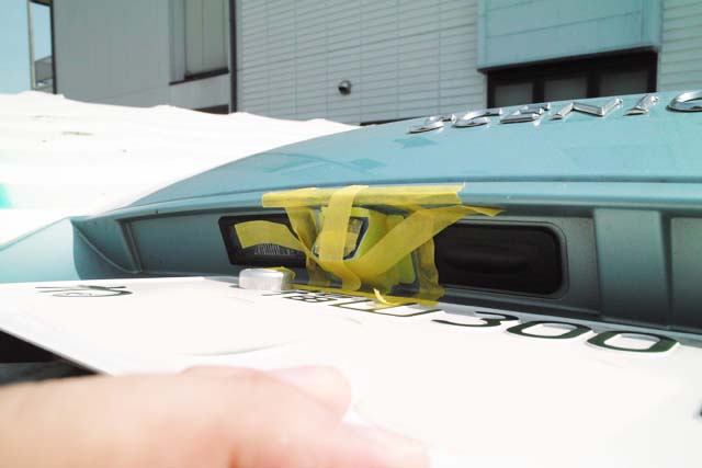 アルミの薄板で造ったカバーをバックカメラにかぶせ、隙間にコーキングを打ちます。