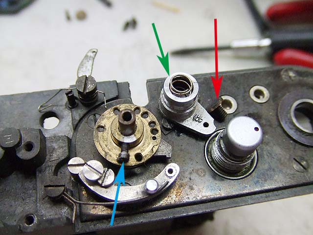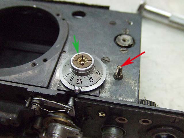 まずはシャッタースピードの調整ですが、高速側はドラムのスプリングのテンションで調整します。