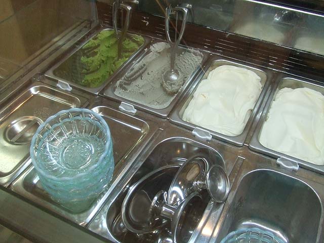 からさわさんの店頭には定番のたまごアイスと、先日から発売されている抹茶アイス、そして今回発売されたごまアイスが並びます。