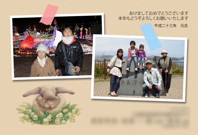 ところでうちの年賀状はと言いますと、今年はウサビッチネタでした。