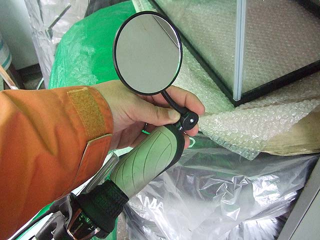 で、たまたま他の用事で行った100円ショップに、自転車のミラーが売られていましたので、使えるものなら使ってみるかという感じで買ってみました。