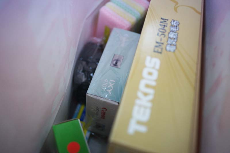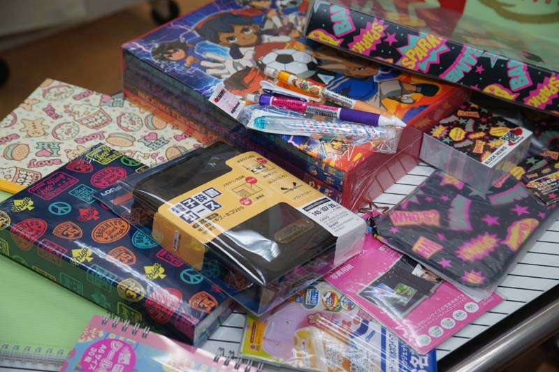 アルバム、ノート、ペン、付箋紙など、いろんなモノがいっぱい入って1000円です。