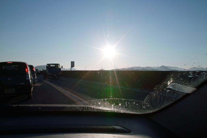 まだ早い時刻ですので、低い太陽が眩しい。