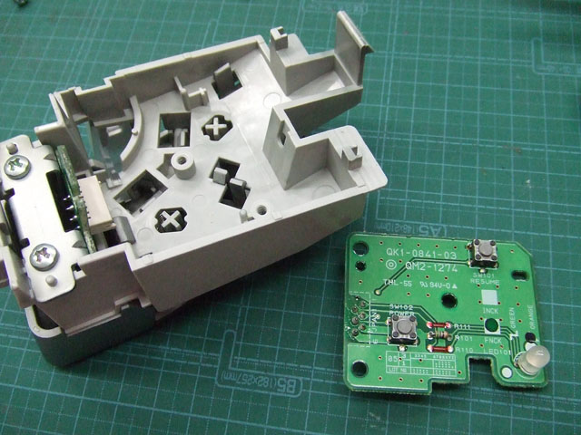 そのジャンクのプリンタが壊れていたいたのはスイッチだけだったので、うちにあるプリンタのスイッチと交換することにしたのでした。