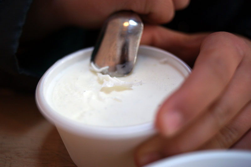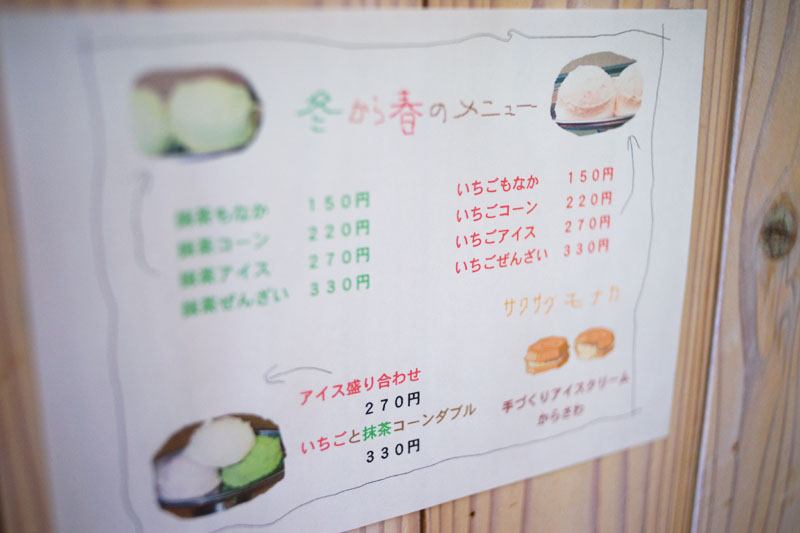 いつもはからさわ定番のモナカにするところですが、今回はコーンにしてみました。