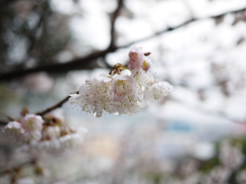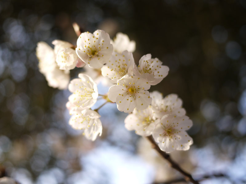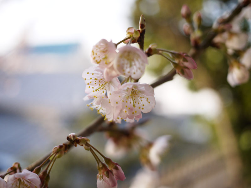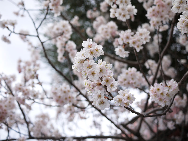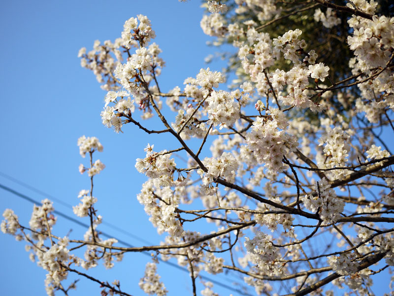 上の写真は昨日の朝の写真です。 実は一昨日辺りから満開状態なのです。 ですが昨日もお伝えしたとおり、一昨日辺りから風が大変強い状態です。 ですのでせっかく満開になった桜も、あっという間に散ってしまうんじゃないかと心配しております。 でも今日は比較的穏やかな様子ですので、もう少しは持つかもしれませんね。 ではうちの桜を撮影したものをいくつかご紹介いたしましょう。 桜といえば入学式シーズンですが、うちの桜はそれより1ヶ月ほど早く咲きます。 それは、うちの桜がソメイヨシノではないからです。 品種が違うので咲く時期も違います。 早く咲くぶんチョットお得な気がしなくも無いですが、散るのも早いので世間がお花見気分の時はもう葉桜になっています。 でももう一ついいところがあって、実はサクランボができるんです。 花が終わったら今度はそれが楽しみになってきます。