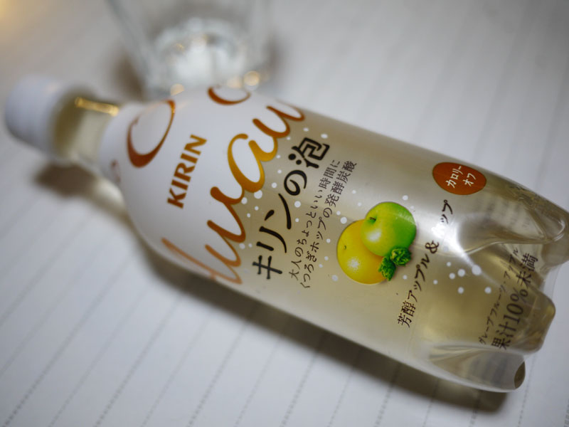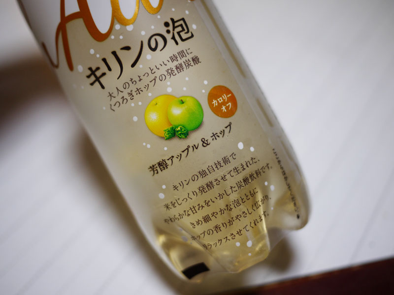 キリンの口の脇に溜まった唾液が泡状になったもの? それともビールの泡だけ集めたもの? じゃなければ泡にこだわったノンアルコールビール? 一体ナニ? この名前から味の想像が付く人なんていないでしょうに。 ではちょっとパッケージを見てみますか。 ホップが入ってるんですか? じゃぁやっぱりノンアルコールビール? でもリンゴも入ってるんですか? しかも米を発酵させた? 日本酒? さっぱりわかりません。 仕方が無いので飲んでみるしか有りません。 注いだ感じはやっぱりジュースっぽい。 ノンアルコールビールという感じじゃないですね。 飲んでみますと、 ? りんごジュース? 言ってみれば、ノンアルコールシードルでしょうか。 これはふつうに美味しいです。 ノンアルコールシードルという位置づけなら、大人向けかもしれませんが、 子どもが飲んでもいいと思いますよ。 しかしホップは感じれなかったかも。 で、なんでキリンの泡なの?