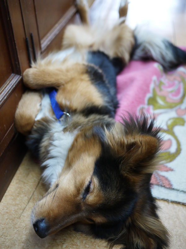 もちろんリヤシートには犬用シートを敷いてますので、汚れは最小限に抑えられているはずですが… 後部座席で座っとけばいいのに、いつも立っていますので、ブレーキを踏むだけでしょっちゅうコケています。 まぁ、彼も外の景色を眺めていたいようで、走行中窓を開けていると、ずっと顔を出しています。 風を切るのが好きなんでしょうかね。 店にいる時は、 お客様をビックリさせないように扉の向こうに居させています。 でも様子をうかがうために、扉の下からおもいっきり顔を出しています。 今まではこれでよかったんですが、 実は最近、 この扉を飛び越えるようになってしまいました。 これで、ほぼ扉の効果なしです。 まぁ、ケン君も近ごろはチョットはわきまえるようになったようなので、いきなり飛び出してお客様をビックリさせるようなこともないとは思うんですが… でもやっぱりだいたいいつもは、 こうなってます。