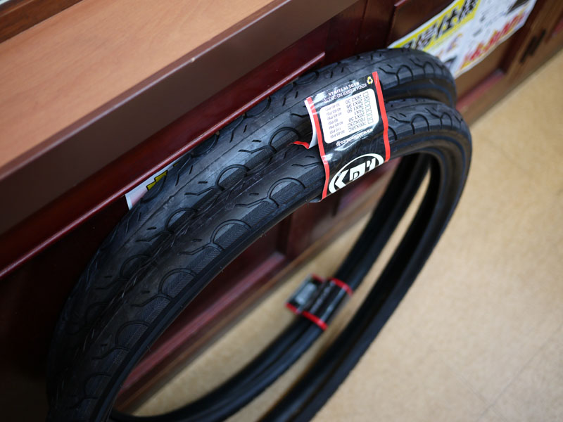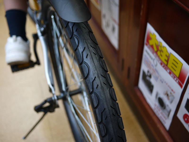 キャラメルタイヤとまではいかないものの、転がり抵抗はありそうなものがついています。