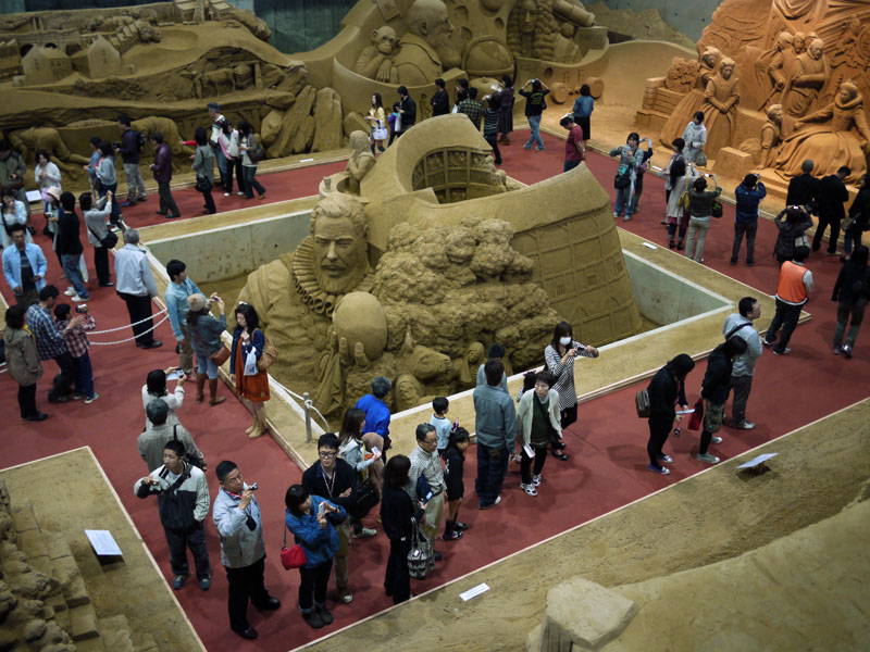 鳥取砂丘には土産物屋も色々とあるんですが、それらと並んで、砂の美術館というのがあるんですね。 この砂の美術館、どんな展示があるのかというと、 砂像なんです。