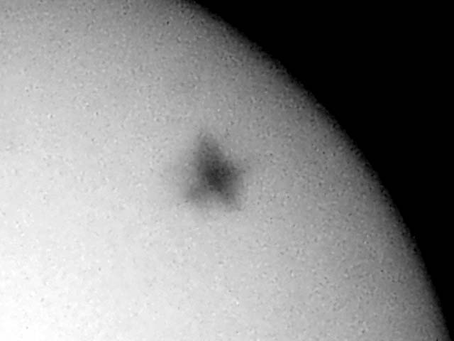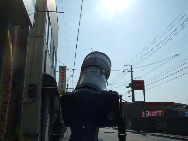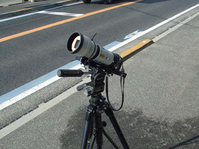 私も何とか撮れたのですが、惨々でした。 まずは、日食装備のCoolpix5700の前に、テレスコマイクロをつけて太陽に向けたところみたところ、うまく減光できていません。バラしてみると、テレスコマイクロの接眼部に位置していた日食フィルターがやけ切れて、機銃掃射のような穴が点々と空いていました。 あわてて対物側に即席フィルターをつけて、再チャレンジしましたが、ピント合わせの難しさと、振動に悩まされ、レリーズさえままならず、ややピンぼけの1枚が撮れただけでした。 2320mm相当の長焦点は、さすがに使いこなせませんでした。