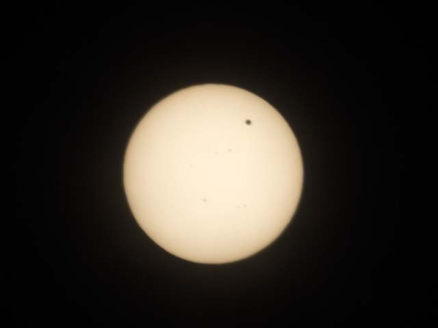 一昨日の月食は曇っていて全く見えませんでしたね。 でも金星の太陽面通過は、尾道でもよく見えました。 いや、私としてはよく撮影できました。といった感じです。 丸い大きいのが太陽。 その中にポツッと右上に黒くなっているのが金星です。