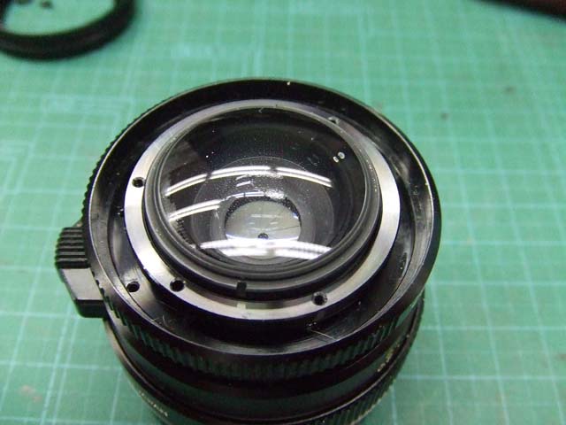 ならば修理ということになりますが、実はそれが問題で、このレンズの前群はカシメてあるんですね。
