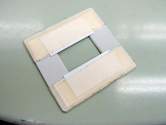 空の135マウントに紙を重ね合わせて110フィルムが掛けられるようにしました。