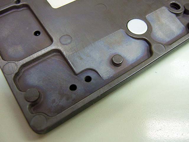 そこを裏から見たのがすぐ上の写真です。135のマウントを焼きたいなら外よりの穴にプラグを挿して、ポッチを押さえるようにしてやればいいわけです。