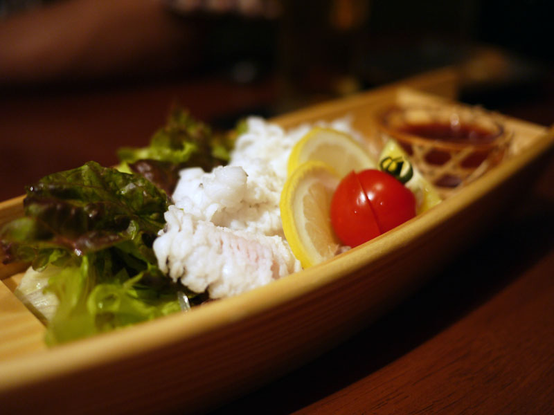 うどん坊店長おすすめらしい。 行ってみるとなかなか雰囲気もいい感じ。 個室の予約でしたので、悪巧みには持って来いです。 料理は基本和風といった感じでしょうか。 ハモもなかなかいけますね。 少し歯応えのある食感がグーです。 ソースも美味しい。 サラダも欲しいなと思って、 トマトのスライスを。 しかし料理人というのは上手に切るもんですね。 その切り口が好きで、ついついトマトのスライスは頼みがちです。 それから、やっぱりこういうお店に来ると、 だし巻き卵は外せませんね。 プルンとした食感もいいですね。 今回の撮影も、パナソニックLUMIX GF3 + 20mm F1.7です。 レンズが明るいので少々暗い店内でも楽しく撮影できますね。 絞りを開放にしていますので、被写界深度も浅く、雰囲気のある写真が撮れます。 あとはどこにピントを合わせるかなんですが、背面液晶ではなかなかピントを合わせる場所を決めるのが難しいです。 ですのでそんな時は、同じ被写体で何回か撮ってみていいのをピックアップするのがいいでしょうね。 一眼レフの光学ファインダーがやっぱり一番使いやすいです。 そして悪巧みはまだ続きます。 次にお伺いしたのは、Bar Blossom。 とても雰囲気のあるショットバーです。 マティニを飲んだのは何年ぶりでしょうか。 しかしここのマティーニ、美味しいです。 時々ジンが強かったり、オリーブの塩が強すぎたりすることもありますが、ここのマティーニは良い感じですね。 オリーブの味とも良いバランスです。 もう一杯おかわりをもらおうかなとも思ったのですが、やっぱり色々飲んでみたい。 で、お願いしたのは、「織姫」というカクテル。 リモンチェッロが入っているということでしたので頼んでみたのですが、 レモンの苦味と甘味が良いバランスです。 まぁちょっと女性向けではありますが、甘ったるい感じではありませんので、男性でも十分楽しめる味じゃないかと思います。 ゆっくりカクテルを飲むのもいいですね。 時間を贅沢に使っているような気がしてきます。