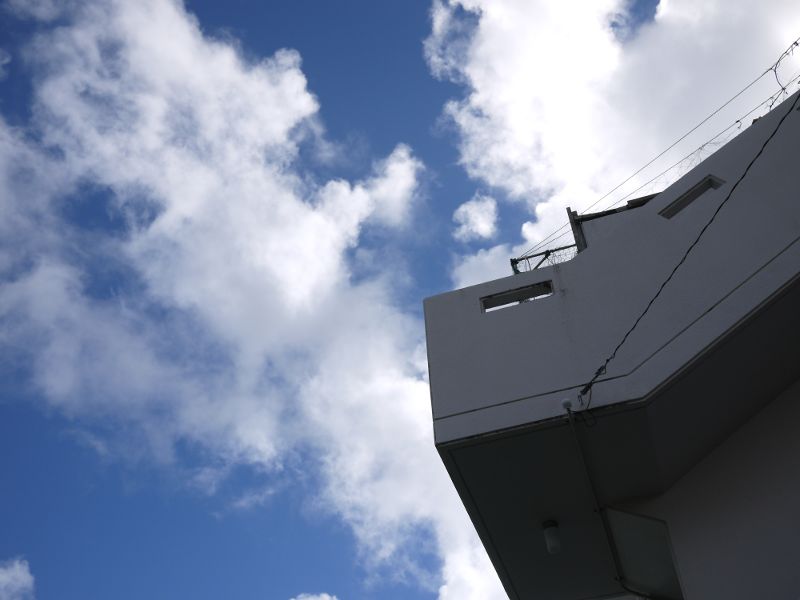 沖縄の家の屋根の上には貯水タンクがよく載っています。
