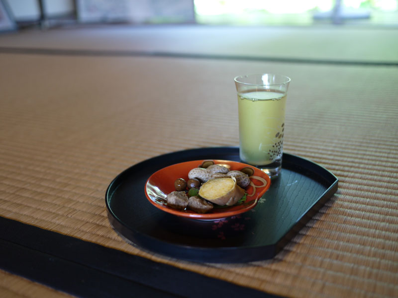ここではお茶とお菓子が出されて、それを楽しみながらボランティアガイドさんの説明を聞くというスタイルです。