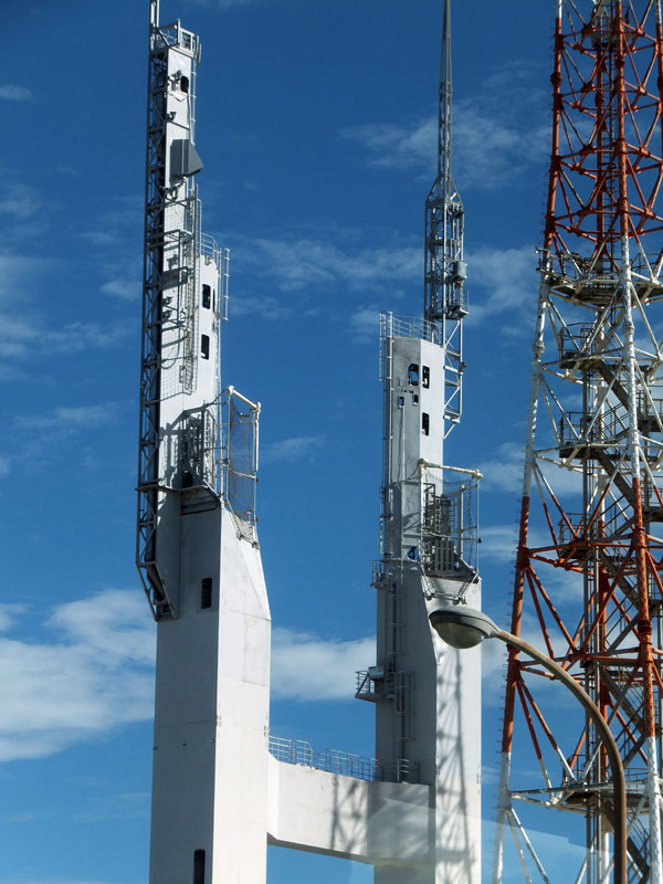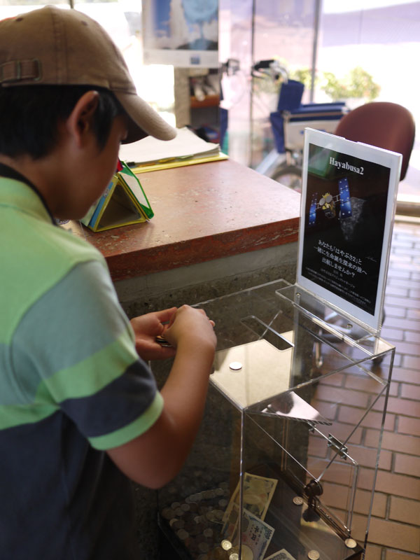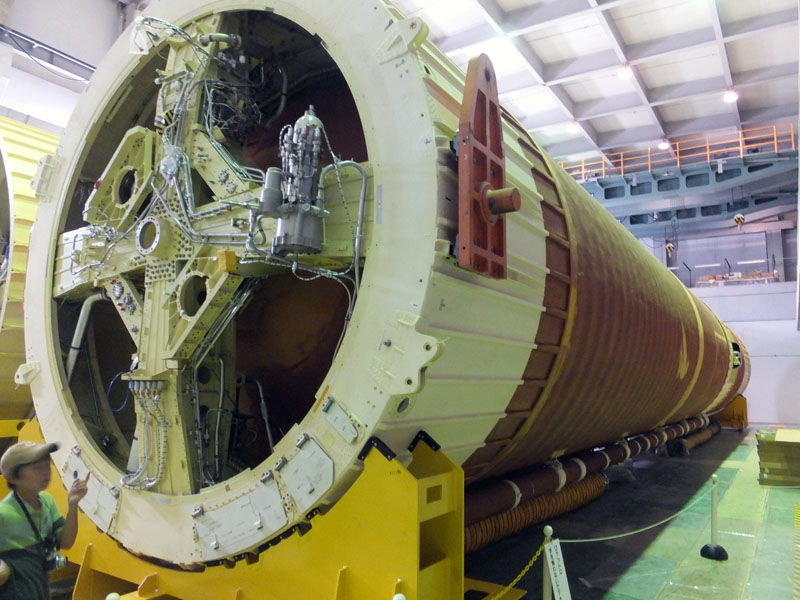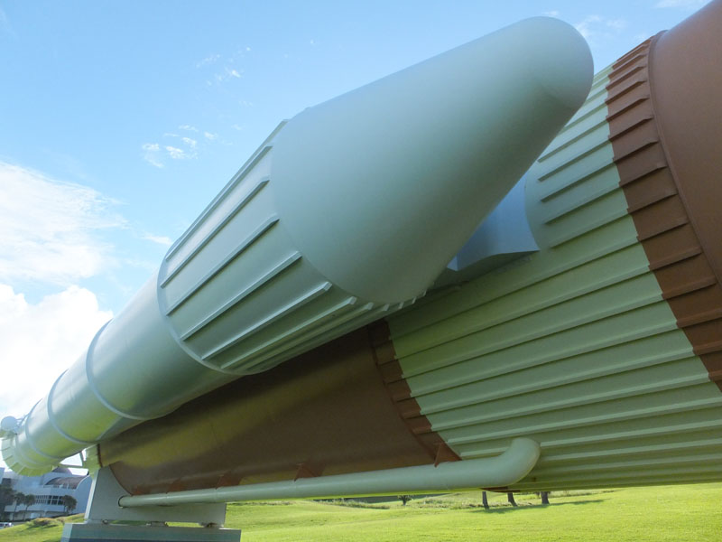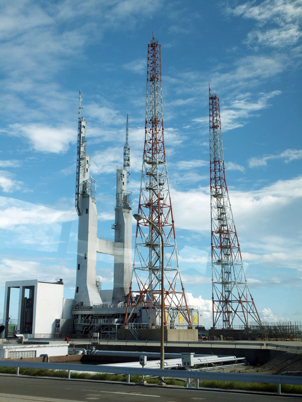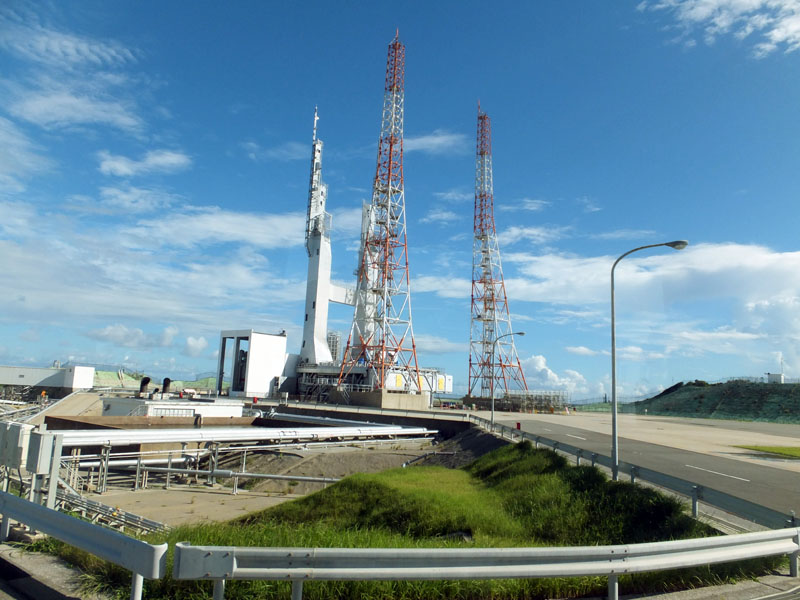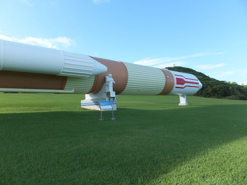 その鉄砲祭りのおかげなのか、宇宙センターの宇宙科学技術館は、見学者がほとんどいませんでした。 おかげで十分楽しめたというわけです。 ところが、実は昼飯を南種子で食べようと思って市街地に行ったのですが、 食べ物屋がのきなき休み。 地元のグルメを楽しもうと思っていたのにあてが外れてしまいました。 みんな鉄砲祭りに行ったのでしょうかね。 市街地をグルグル回って、開いていたのは広島風お好み焼き屋でした。 種子島まで来てそれはないでしょう。 と言うことで昨日の続き、今回は宇宙センターの見学ツアーの様子をご紹介しましょう。 ツアーはバスに乗って移動します。 やっぱりここに来るなら見学ツアーに参加しないともったいないですよね。 ツアーに参加すれば、実物のロケットや管制室なども見れるのですから。 と言うことで一行は一路大きな倉庫へ。 ここに置いてあるのが、H-IIロケット7号機。 いろんな事情が重なって、結局打ち上げることがなかったH-IIロケット7号機のホンモノを見ることができます。 ここはエンジンがつくところのすぐ上の部分らしいです。 何かいろんなパイプやらケーブルやらがゴチャゴチャに入り組んでますね。 これらの一つ一つはちゃんと図面に起こしてあるんでしょうかね。 じゃないと何機もつくれませんからね。 でも私にはワンオフでつくってるように見えるんですが… こういうナットは見たことがありますよ。 車の設計ではまず使いません。 航空機用のナットによく似ています。 おそらくかなり軽量に作られているはずです。 これはどういう働きをするんでしょうね。 「共通隔壁真空引」と書いてあります。 こちらはロケット表面。 吹きつけられた発泡性の断熱材が分かると思います。 この色は断熱材自体の色なんだそうです。 H-IIからH-IIBに至る日本のロケットはオレンジ色をしているのはご存知と思いますが、 あれは塗装したわけでなく、吹きつけられた断熱材の色なんだそうです。 面白いですね。 では次は発射台に移動します。 これが今使われている、H-IIBロケット用の発射台なんだそうです。 50m級のロケットを打ち上げるだけあって、発射台も背が高いですね。 ではもう少しズームアップしてみます。 更に寄ってみます。 バスの中なので少しガラスの反射が写ってしまっていますが、 なんかカッコいいですね。 更に寄ると、 ちゃんとハシゴがついていて登れるようになっているのが分かります。 でもそれ以上の詳しい仕組みは私にはわかりません。 根元の方はこんな感じ。 なんか工場のような感じですね。 そして、最後に行ったのが総合司令棟と呼ばれる打ち上げ管制室です。 なんかこんな感じのをよくテレビで見る気がします。 でも、意外と少人数。 まぁ、アポロのように有人宇宙船を管制するわけではありませんから、こんな規模でいいのでしょうね。 で、やっぱりこんなスイッチがあります。 いざというときの爆破スイッチなんでしょうね。 いやあ、ツアーに参加すると面白いですね。 1時間あまりのツアーなんですが、時間がすぐに経ってしまった気がします。 ツアーも技術館も無料なのですが、受付の横にハヤブサ2のための募金箱がありました。 ただでは申し訳ないので、雀の涙ほどではありますが、募金をさせてもらいましょう。 ツアーが終わったので、技術館の外に出てみます。 こちらはさっき見た発射場です。 遠くからでもよく見えますね。 やっぱり大きい。 で、広い庭には、H-II型ロケットの実物大の模型があります。 で、そこから少し離れた所にこんなものが。 ここにカメラを置いて撮影すれば、ベストポジションですよという話。 ちょっと笑ってしまいましたがしっかり活用させて頂きました。 といった感じで、念願の種子島宇宙センターの見学ができました。 色々楽しめて良かったです。 しかし、ちょっと残念だったのが、宇宙服が置いてなかったこと。 まぁ、ここは宇宙飛行士とは関係ない施設だから当然といえば当然なんですが。 ですので次は筑波に行こうかと、もう考えているのでした。