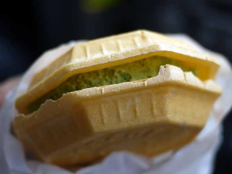 と言うことで、今回の抹茶アイスも、モナカで頂きましょか。