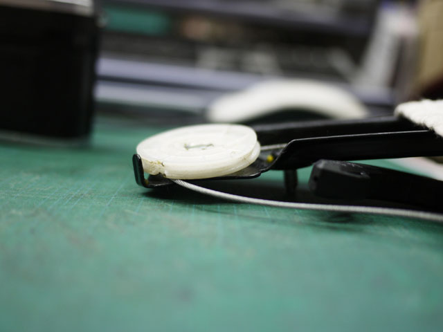 ワイヤーも緩んでしまっていますので、ちゃんと巻くことが出来るのか、まずはモーターを外してみましょう。