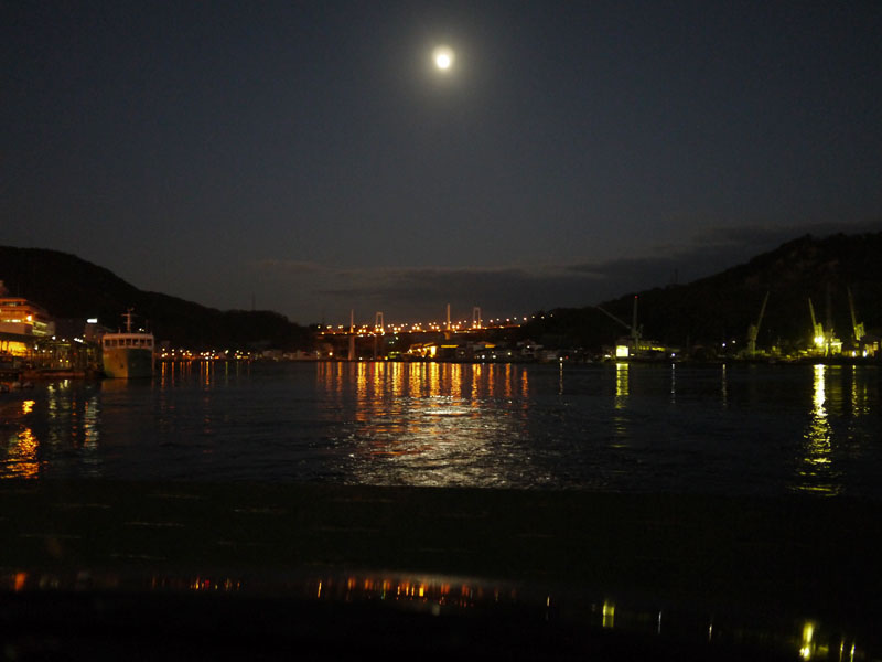 そして、尾道水道を渡船で渡る頃には、日もとっぷり暮れて、明るい月夜になっていました。