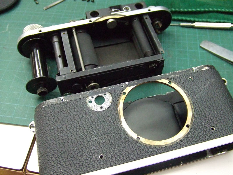 昨日の記事では、ライカIIIaのファンダーの修理のためにカバーを外したところまでお伝えしましたが、今回はその続き。