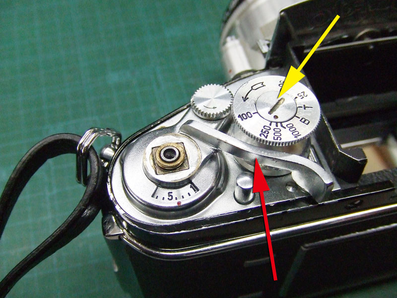 このカメラのカウンター及び巻き上げ機構はカメラの左側にあります。