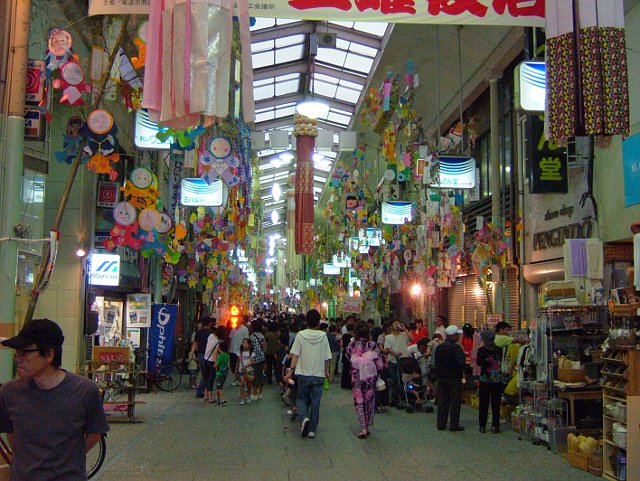 尾道駅近くから東に向かって伸びるアーケードの下が夜店の会場です。