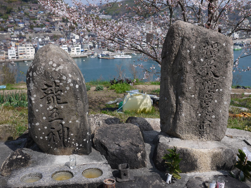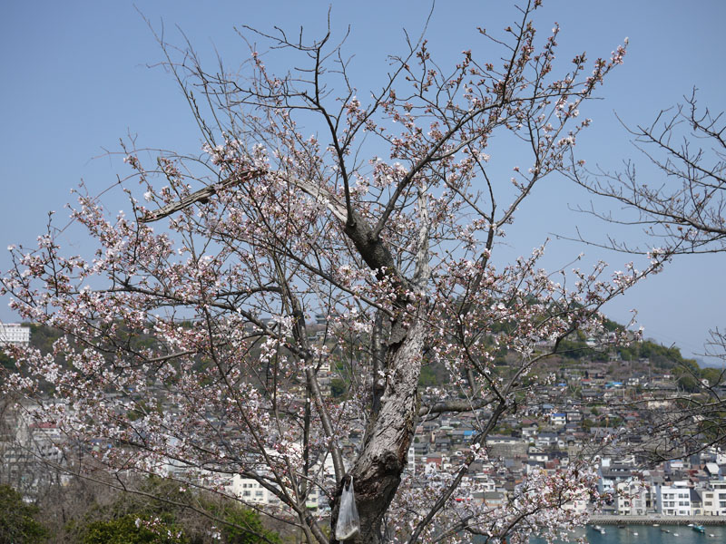 うちの家の裏山は、以前は一本松と呼ばれていまして、大きな松が一本有ったんですが、いつの間にかその松はほとんど目立たなくなり、と言うか既に枯れているようにも見えますが…その代わりというわけでもないのでしょうが、桜の木が3本ほど大きくなっている状態です。とはいえこれも誰も世話をしていないのでしょうね。桜の一本はやっぱり枯れかけているように見えます。でも残り2本は元気なわけで、今年もしっかり花を咲かせてくれるはずです。と言う事で頂上まで登ってみますと、うーん、2分咲き?もう一本は、まだ開花してないようです。どうも尾道はいつも遅いようですね。それでもいくらか開いている花もありますので、せっかくなので撮影しましょう。その横にはこんな花も。ボクもGRD IIIで撮影です。ここの頂上からの眺めはなかなかいいんですよ。こんな感じで尾道がよく見えます。では、龍王さんに挨拶をして、せっかくなので他の道を通って帰りましょうか。道々にはいろんな花が咲いていますね。ケンくん、その水は飲まないほうがいいと思うよ。それから、通り道なのでひいじいちゃんのお墓にも寄っていきますか。ボクももう6年生。ひいじいちゃんに報告しとこうか。