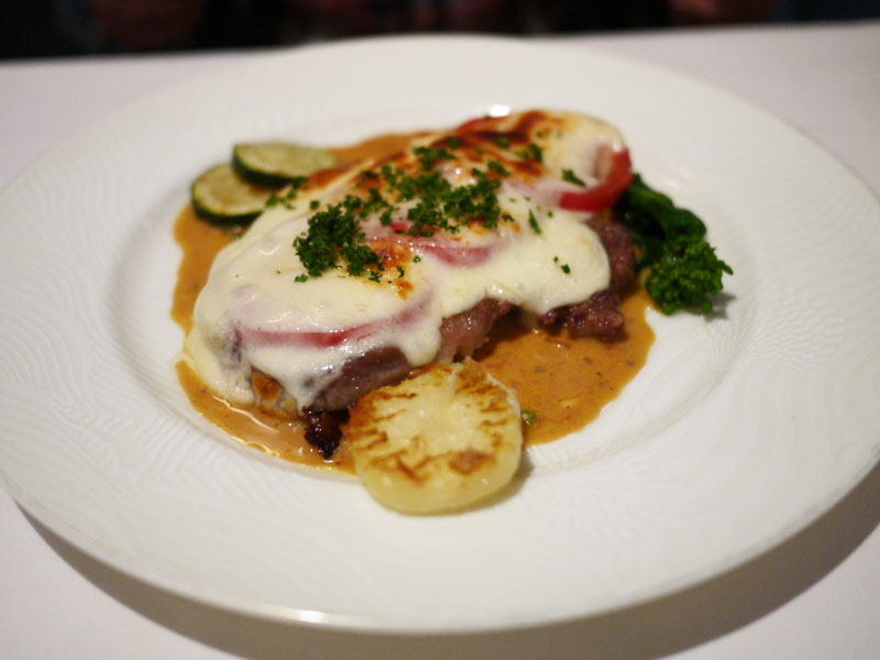 黒豚のソテー特製トマトソースとモッツァレラチーズ。