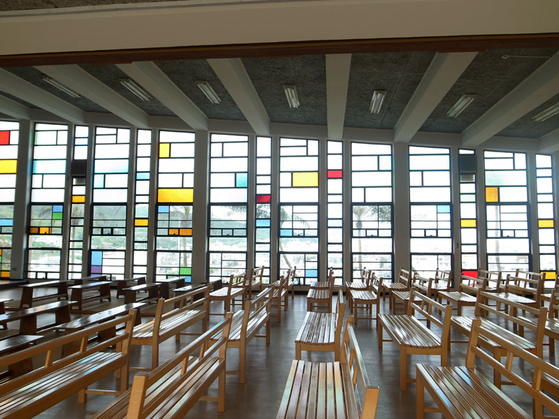彼はソーキよりも三枚肉のほうが好きです。三枚肉も美味しいよね。そしてもちろんネギ抜きです。丸隆そばの表にいたシーサーは、よだれを垂らしていたんだとか。では南部の写真を。まずはこちら、聖クララ修道院。28mmの広がり感をうまく使ってますね。広角は、縦位置が面白かったりします。それを分かってか知らずか、良い角度で撮ってますね。背が低いことも幸いだったかも。瀬長島にも行ったんですが、風向きのせいか、南に向かって離陸していました。ですので、着陸態勢の低く入ってくる飛行機を見ることができませんでした。残念。