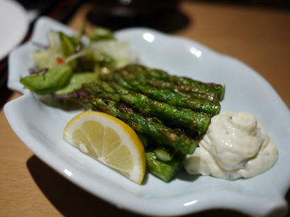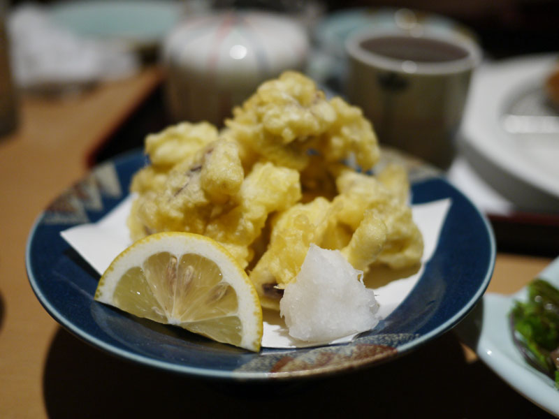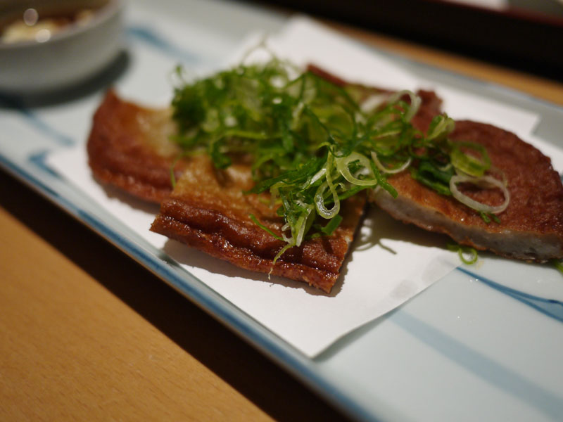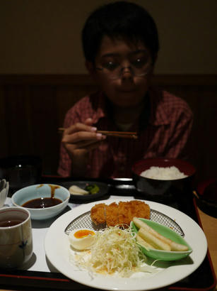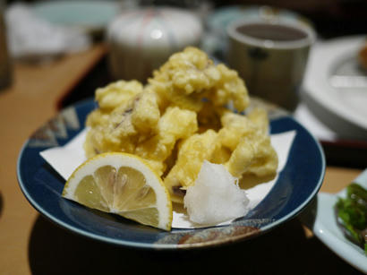 今回は、うちの子には定食を食べてもらいましょう。トンカツ定食。というのも、やっぱり定食がリーズナブルだから。でもうちの子は定食が嫌なんです。なんでかって言うと、一緒についてくる茶碗蒸しとか、味噌汁とか、漬物とか、お茶とかが好きじゃないから。でもそこは計算済みです。茶碗蒸しとかは、私が頂くわけです。でもそれだとうちの子には、せっかく味さいに来た面白みが少なくなってしまうので、他にも一品料理を注文しましょうね。もちろん鶏の唐揚げは外せませんが、アスパラ焼きなんてどうでしょう。今回は初めてですが、こんなのも頼んでみました。じゃこ天。たまにはこういうのもいいかも。いつもはタコ天を頼むのですが、今回はちょっと変えて、ゲソ天を頼んでみました。うん、これ、なかなかいけますねぇ。ゲソは他にも、焼きと唐揚げもあります。次は他の食べ方で頼んでみますか。それと、うちの子の好きな出汁巻き玉子を、が、しまった。ここの出汁巻き玉子は最近ネギ入りだった。ネギ嫌いのうちの子は食べません…仕方なくこれは全て私が食べることになったのでした。次はネギ無しで頼んでみよう。