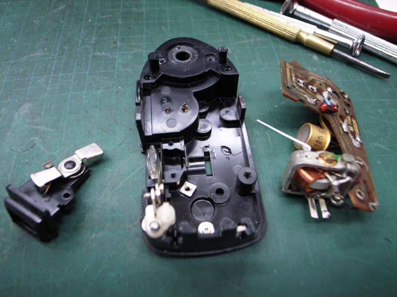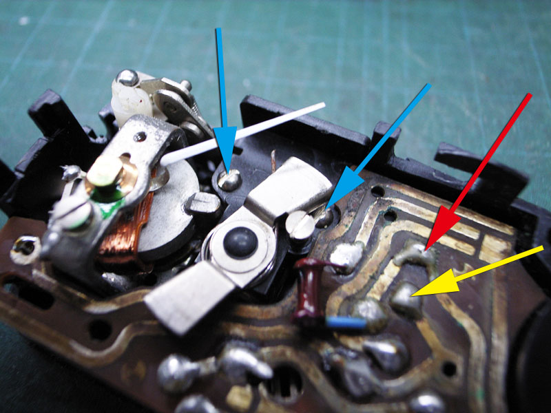 メーター部分が、ケースに固定されていますのでそれを外したいところですが、この矢印のネジは外してはいけません。