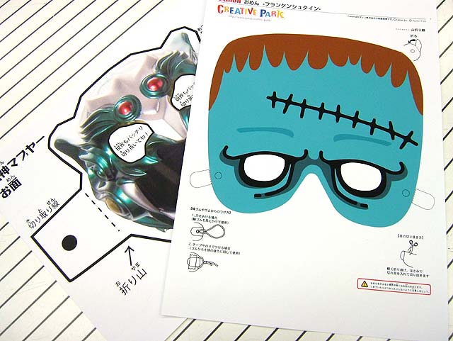 上側にあるフランケンシュタインのお面はCanonのペーパークラフトです。